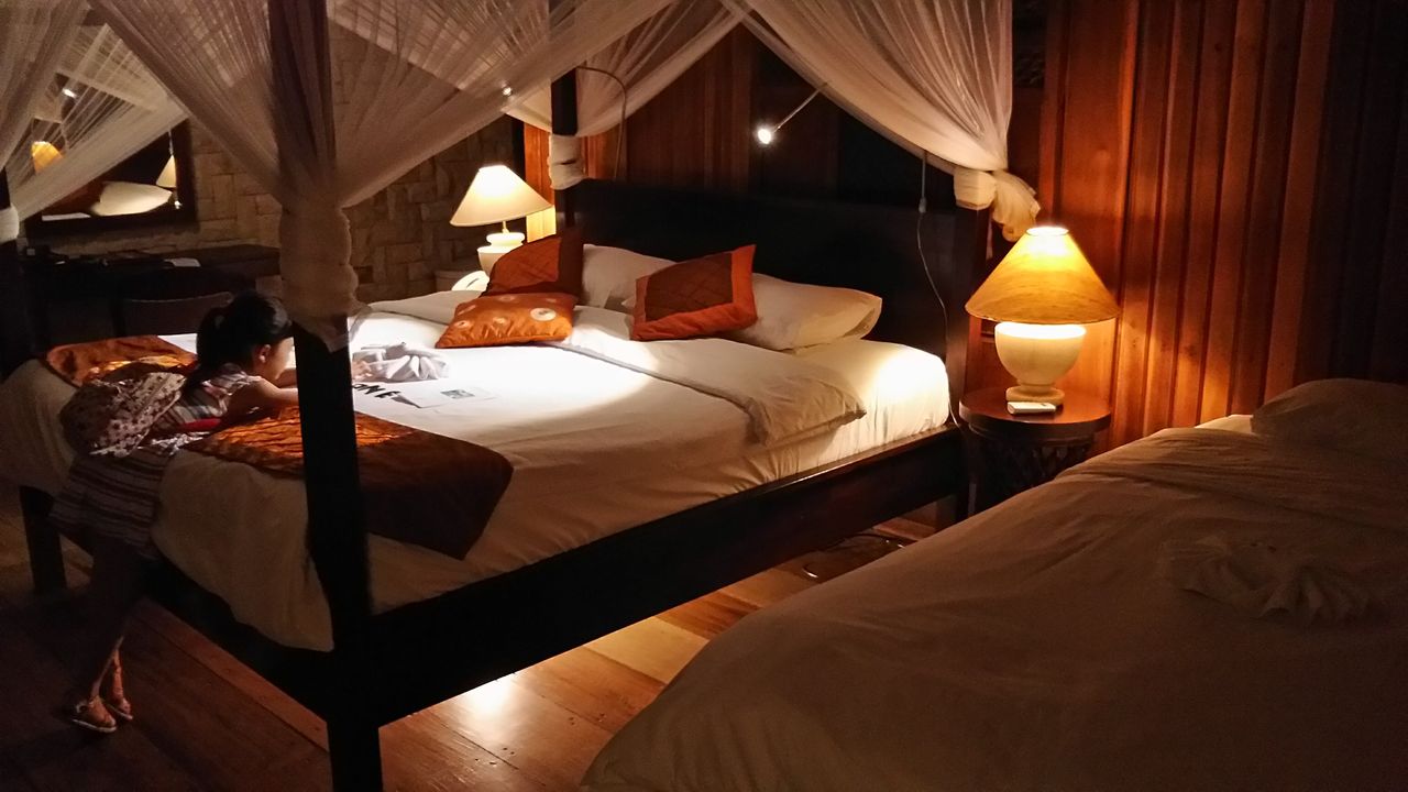 部屋はガーデンビューヴィラでこんな感じ。到着が夜だったので暗い。。