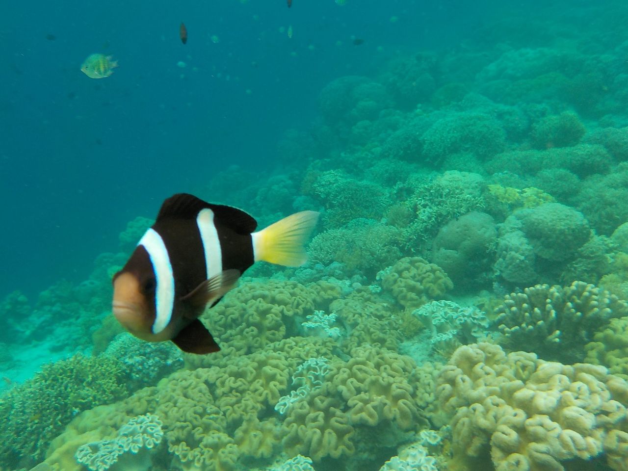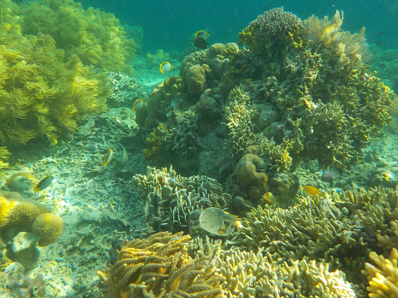 ボートトリップの後、午後はまた徒歩で同じ場所で。午後は引潮だったのでちょっと泳ぐとお腹の真下に珊瑚がある感じ。傷付けないように泳ぐのが大変。