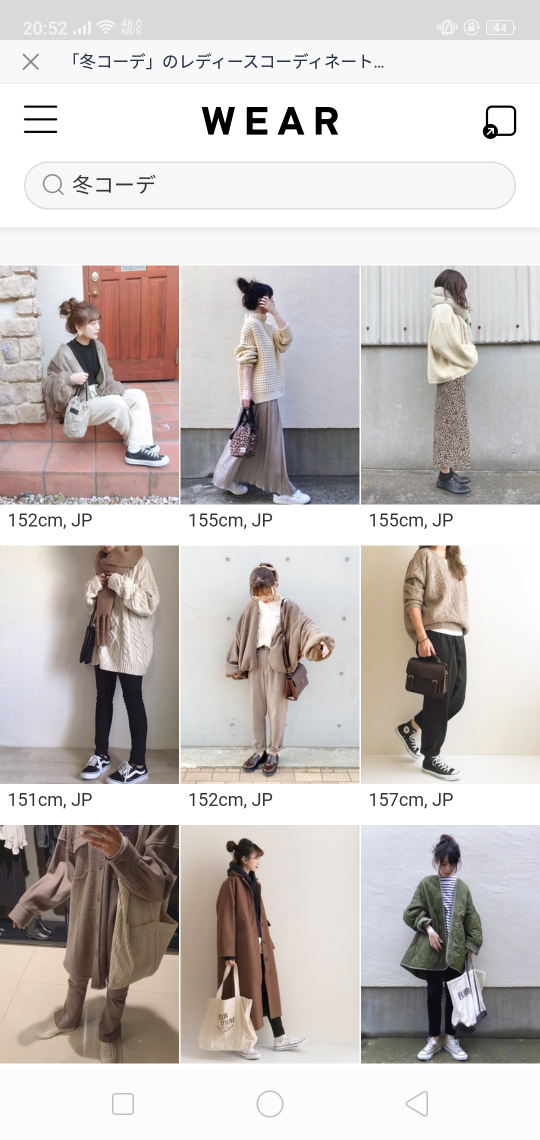 例えば「冬コーデ」で検索すると▼
