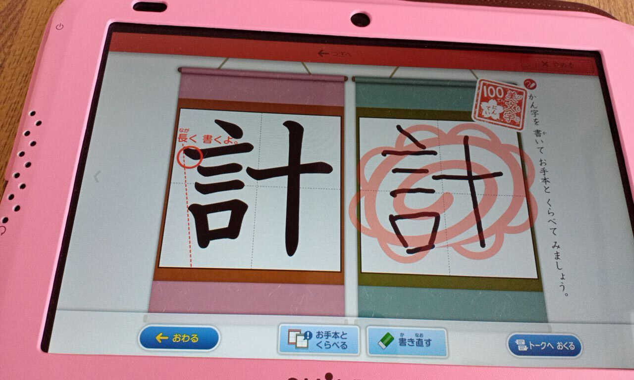 漢字は、書き順はもちろん、文字のバランスまでみてくれます▼
